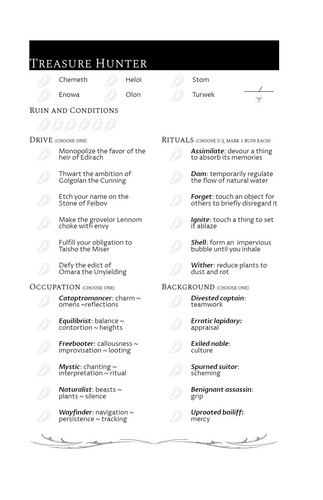 - VSM FF Treasure-Hunter -Sheet for stingy GMs to give to players. Form-fillable and included with other PDF files.